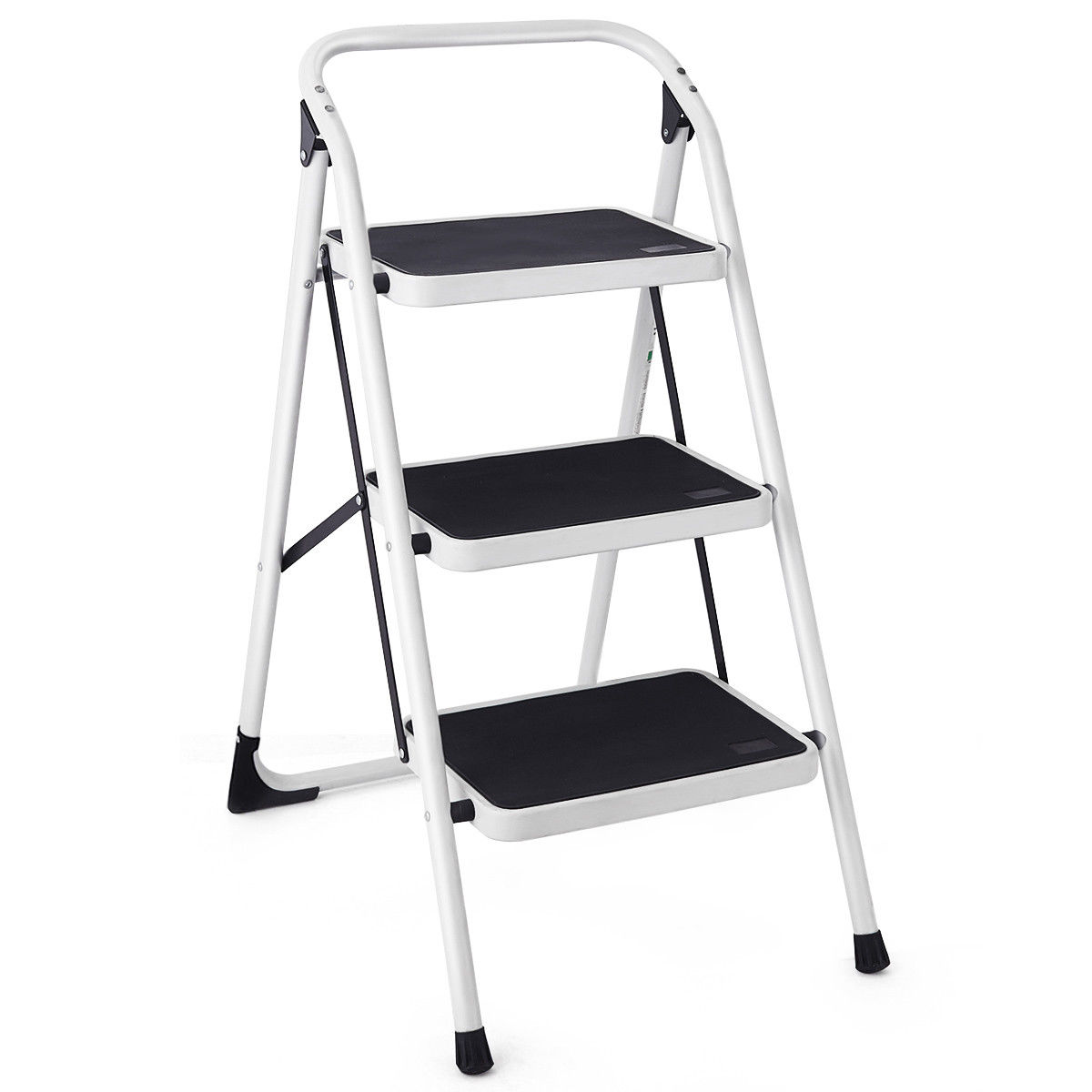 Goplus 3 Step Lightweight Ladder HD Platform Foldable Stool 330 LB Cap. Saving Space